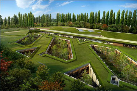 英國薩里赫斯哈姆高爾夫俱樂部的地下五星級酒店由ReardonSmith建筑師事務所設計,酒店內建有豪華溫泉會所以及高爾夫設施。為了防止不必要的土地開發,英國建立了綠化帶。通過棲身地下這種方式,這家五星級酒店滿足了有關城市發展的限制條件。此外,這一設計也同樣能夠降低對交通流量的影響。由于地上建筑棲身于現有林地之內,附近當地居民的視野不會受到影響,可以盡情欣賞那不可觸摸的自然景色。    10.北京創意區綠化帶