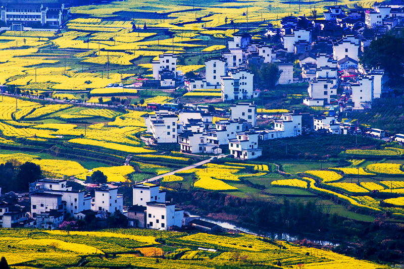 該縣要求全縣每一幢房子、每一座橋梁、每一條道路、每一片綠化,甚至每一扇門窗、每一處欄桿都按景觀物的要求來建設或制作,全面地融入地域的特色,形成“處處風光步步景”鄉村旅游發展格局。同時,注重風格的統一協調,景區內的景點建筑、村民建筑、單位建設都緊扣旅游主題,彰顯地方特色,新建房屋基本上采用新徽派風格,縣內主要公路沿線、景區景點可視范圍,油菜種植覆蓋率達90%以上,形成了“油菜花經濟”,三條精品旅游線路沿線茶園每年套種梨樹、桃樹等帶花苗木15萬余株,形成“花開百村景象”,使婺源鄉村旅游有看頭、看不完。