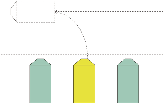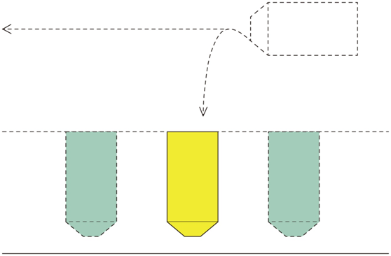 此種方式停車較慢,發(fā)車迅速,平均占地面積少,是常用的停發(fā)車方式如圖。