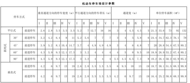 停車寬度一般和車輛的類型和車輛之間的間距密切相關。不同車輛的寬度如表所示。