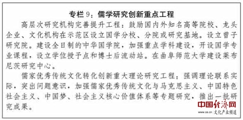 (四)打造儒藝創(chuàng)意文化產(chǎn)業(yè)基地。以曲阜新區(qū)國(guó)家級(jí)文化產(chǎn)業(yè)示范區(qū)和孟子湖新區(qū)為重點(diǎn),突出創(chuàng)意文化環(huán)節(jié)的開(kāi)發(fā)和拓展,推動(dòng)創(chuàng)意文化產(chǎn)業(yè)與其他產(chǎn)業(yè)的相互滲透和融合發(fā)展,建設(shè)具有儒家特色的創(chuàng)意文化產(chǎn)業(yè)集群。依托文化文物單位館藏文化資源,充分采用數(shù)字化、信息化技術(shù),研發(fā)推出工藝精良、制作精美的文物創(chuàng)意產(chǎn)品、旅游紀(jì)念品和衍生創(chuàng)意產(chǎn)品,促進(jìn)文化創(chuàng)意產(chǎn)品創(chuàng)新發(fā)展。大力發(fā)展以儒家文化品牌為主導(dǎo)的動(dòng)漫產(chǎn)業(yè),積極加強(qiáng)基于虛擬現(xiàn)實(shí)技術(shù)的原創(chuàng)動(dòng)漫游戲產(chǎn)品創(chuàng)作,構(gòu)建高端動(dòng)漫、網(wǎng)絡(luò)游戲產(chǎn)業(yè)發(fā)展體系。積極推動(dòng)與儒家文化品牌動(dòng)漫有關(guān)的圖書(shū)、報(bào)刊、音像制品的發(fā)行出版,引導(dǎo)企業(yè)開(kāi)發(fā)生產(chǎn)衍生產(chǎn)品。積極采用全景環(huán)繞、虛擬現(xiàn)實(shí)等技術(shù),創(chuàng)作一批影視精品、舞臺(tái)劇、音樂(lè)劇,打造高品質(zhì)旅游實(shí)景演藝產(chǎn)品,再現(xiàn)孔孟形象,反映儒學(xué)思想對(duì)人類文明的貢獻(xiàn)、春秋戰(zhàn)國(guó)時(shí)代的社會(huì)變革;積極加強(qiáng)與中央和省市各級(jí)電視臺(tái)、影視制作單位和網(wǎng)絡(luò)媒體的戰(zhàn)略合作,爭(zhēng)取建設(shè)影視基地。