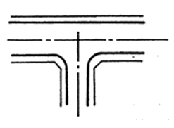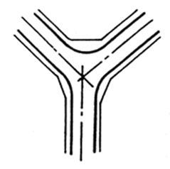 是道路盡端與別條道路相交的主要形式;一般用于次要道路與主要干道相交的交叉處,應(yīng)優(yōu)先保證主要干道的交通通暢。
