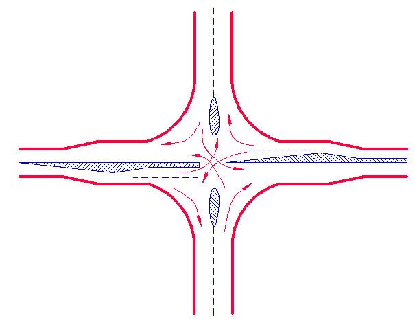 適當布置交通島限制行車路線,使車流按一定組織方式通過交叉口,把沖突限制在一定范圍內;