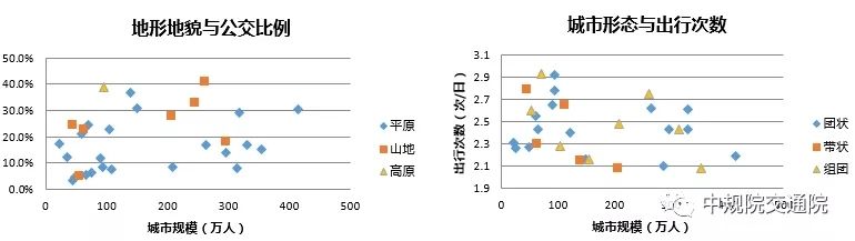 研究發現,除了城市規模,城市之間的差異體現在許多方面,如城市地理環境、空間形態、城市職能、區位等,這些差異都或多或少地帶來交通特征的差異。尤其是改革開放以來,各城市發展的速度差異導致發展階段的差異。城市間的差異直接帶來經濟水平、存量地區規模、機動車擁有、交通設施水平等的分化,導致不同的出行特征,包括出行距離分布、交通結構、出行目的、時間分布等。這種差異性不僅體現在城市之間,還體現在城市內部不同功能、強度、發展階段的地區之間。