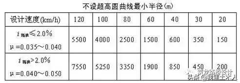 (3)有條件時,最好采用不設超高的最小半徑。