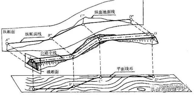 路線縱斷面設計:研究道路縱坡及坡長的過程。 路線橫斷面設計:研究路基斷面形狀與組成的過程。