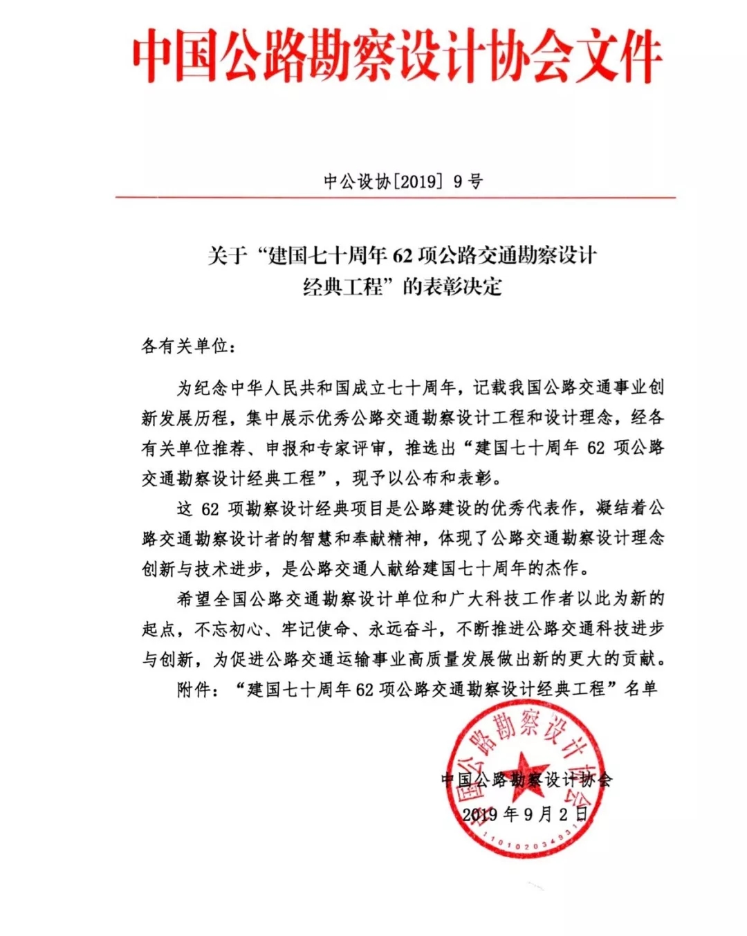 中國公路勘察設(shè)計(jì)協(xié)會表彰62項(xiàng)“建國七十周年公路交通勘察設(shè)計(jì)經(jīng)典工程”