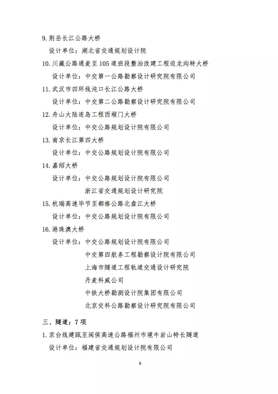 | 浙江省交通規(guī)劃設(shè)計(jì)研究院 | 6 |