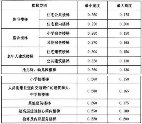 注:螺旋樓梯和扇形踏步離內(nèi)側(cè)扶手中心0.250m處的踏步寬度不應小于0.220m