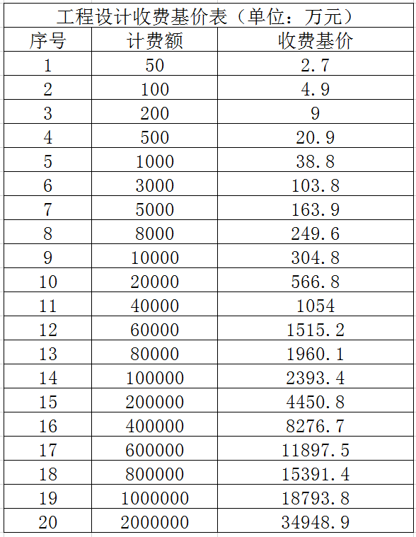 工程設(shè)計(jì)取費(fèi)可參考《國家計(jì)委、建設(shè)部關(guān)于發(fā)布的通知》(計(jì)價(jià)格〔2002〕10號),采取按照建設(shè)項(xiàng)目單項(xiàng)工程概算投資額分檔定額計(jì)費(fèi)方法計(jì)算收費(fèi)。