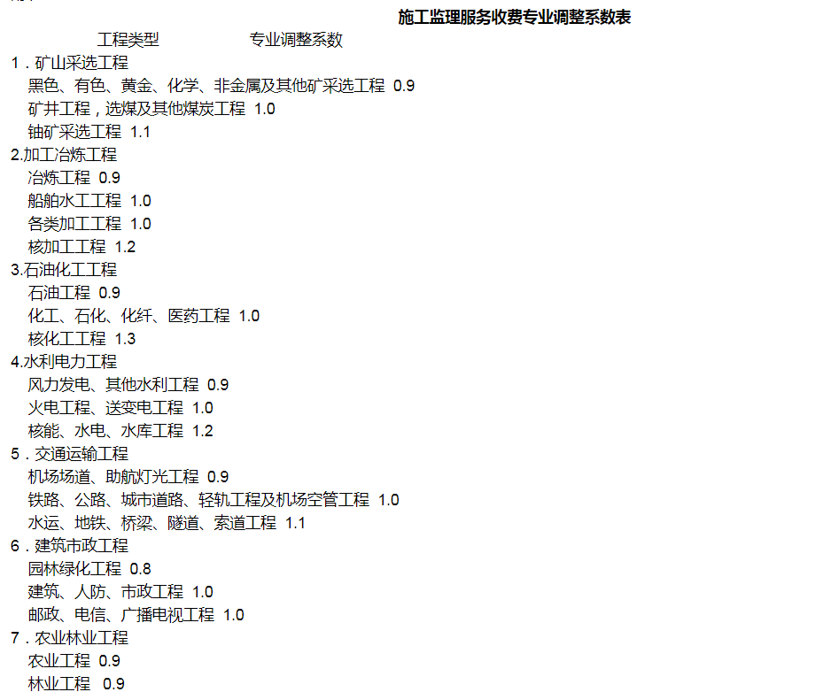 工程復(fù)雜程度調(diào)整系數(shù):0.8~1.2(工程復(fù)雜程度具體調(diào)整系數(shù)由工程咨詢機(jī)構(gòu)與委托單位根據(jù)各類工程情況協(xié)商確定)。