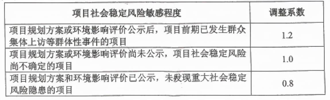 表7 社會穩(wěn)定風險敏感程度調(diào)整系數(shù)