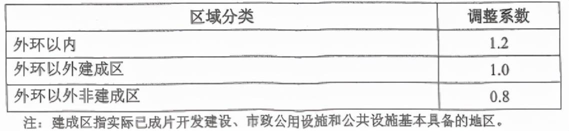 表8 區(qū)域范圍調(diào)整系數(shù)
