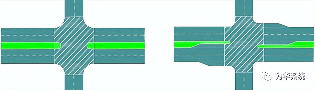 交叉口物理區(qū)是指交叉道路的重疊部分,以交叉口轉角及相鄰的所有邊界為限,如下圖所示。