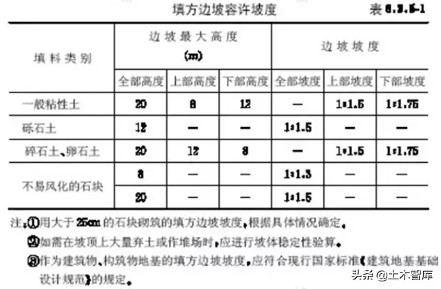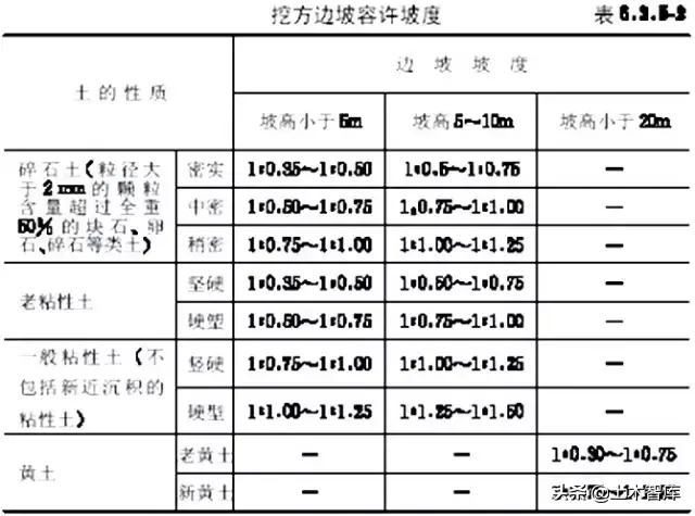 6)邊坡的放坡要求(填、挖方邊坡要求):