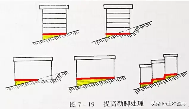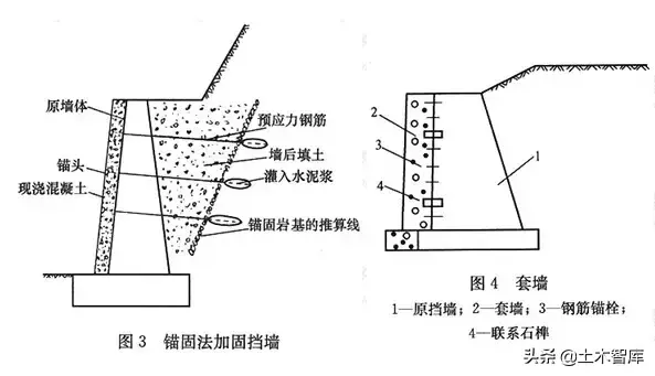 6)擋土墻的加固: