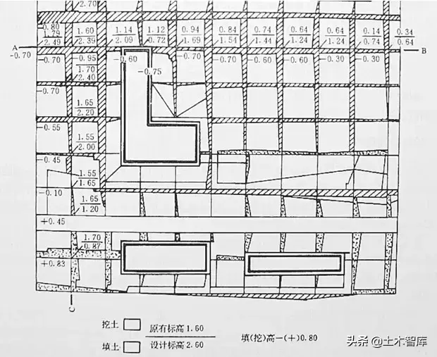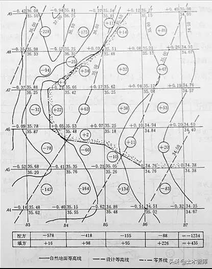 十五、施工高程的確定、標注零界線、土方量的計算: