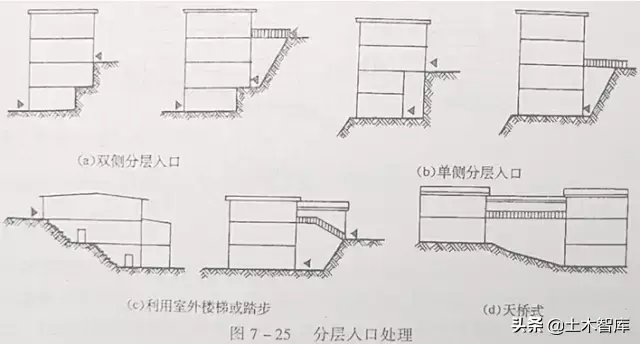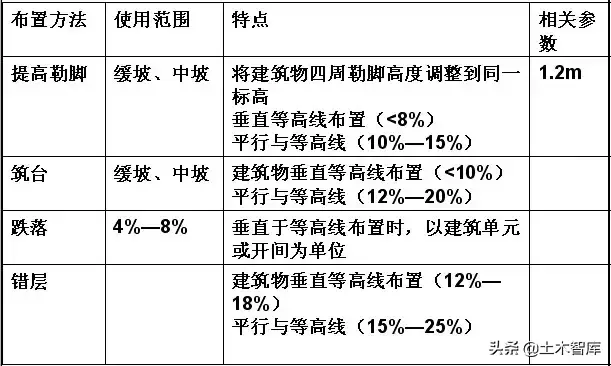 4、建筑物結合地形布置的方法: