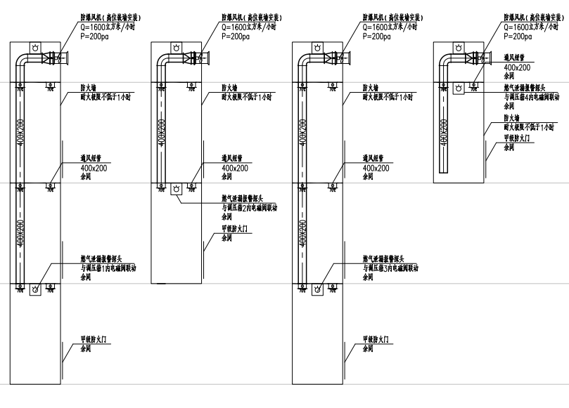 1. 通風不良的管井頂部設防爆風機,底部設補風口(通室外),在管井頂部及底部設燃氣泄漏報警探頭;