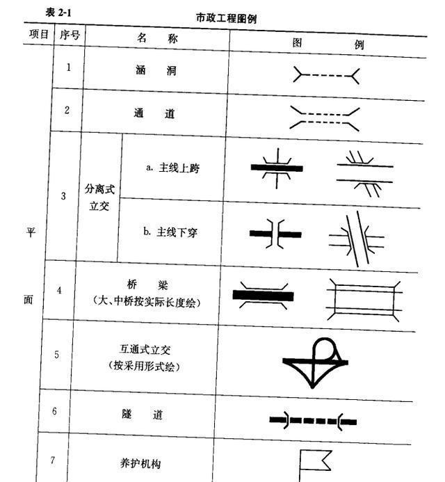 市政工程常用圖例見表2-1~表2-3