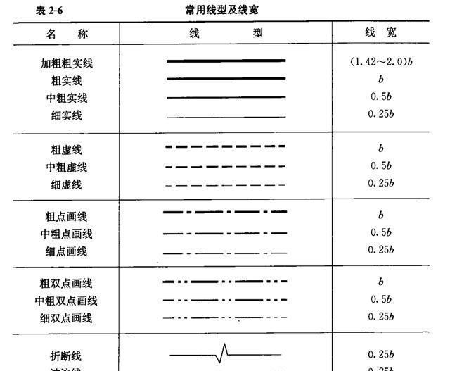 3)圖紙中常用線型及線寬應符合表2-6的規定。