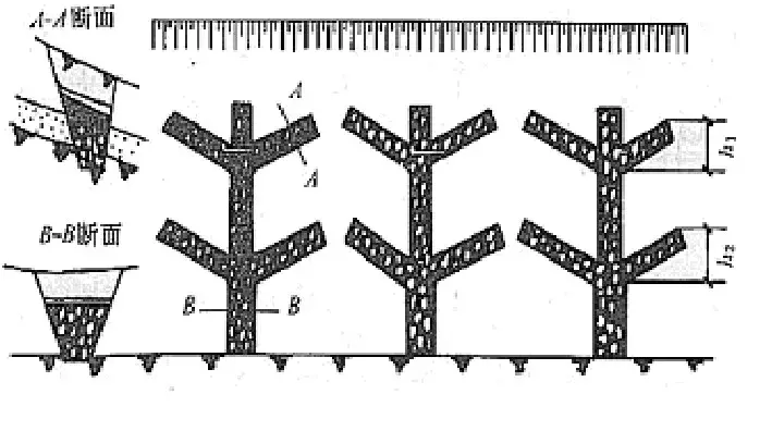 - 通常使其軸線與滑動方向基本平行,布置成平行的條帶狀,支撐滲溝的間距及斷面寬度,可按照每條滲溝所擔負的下滑力計算確定。斷面采用矩形,寬度為2~3m,間距為8~15m或更大些。