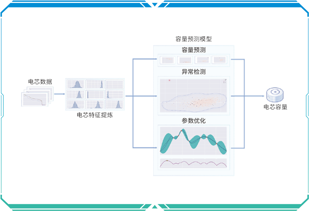 利用電芯部分容量的充放電曲線,基于AI大數(shù)據(jù)預(yù)算,預(yù)測(cè)出電芯容量完整的充放電曲線;系統(tǒng)包含電芯特征數(shù)據(jù)提取,離線大數(shù)據(jù)訓(xùn)練建模,在線重建預(yù)測(cè),迭代優(yōu)化模型等部分。平均預(yù)測(cè)精度≤0.2%,最大預(yù)測(cè)精度≤0.5%。